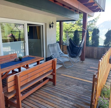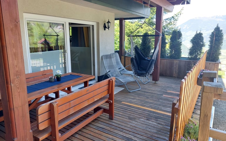 großer Balkon mit Blick über das Zillertal und die Bergwelt