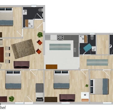 4 vollwertige Schlafzimmer mit Doppelbetten